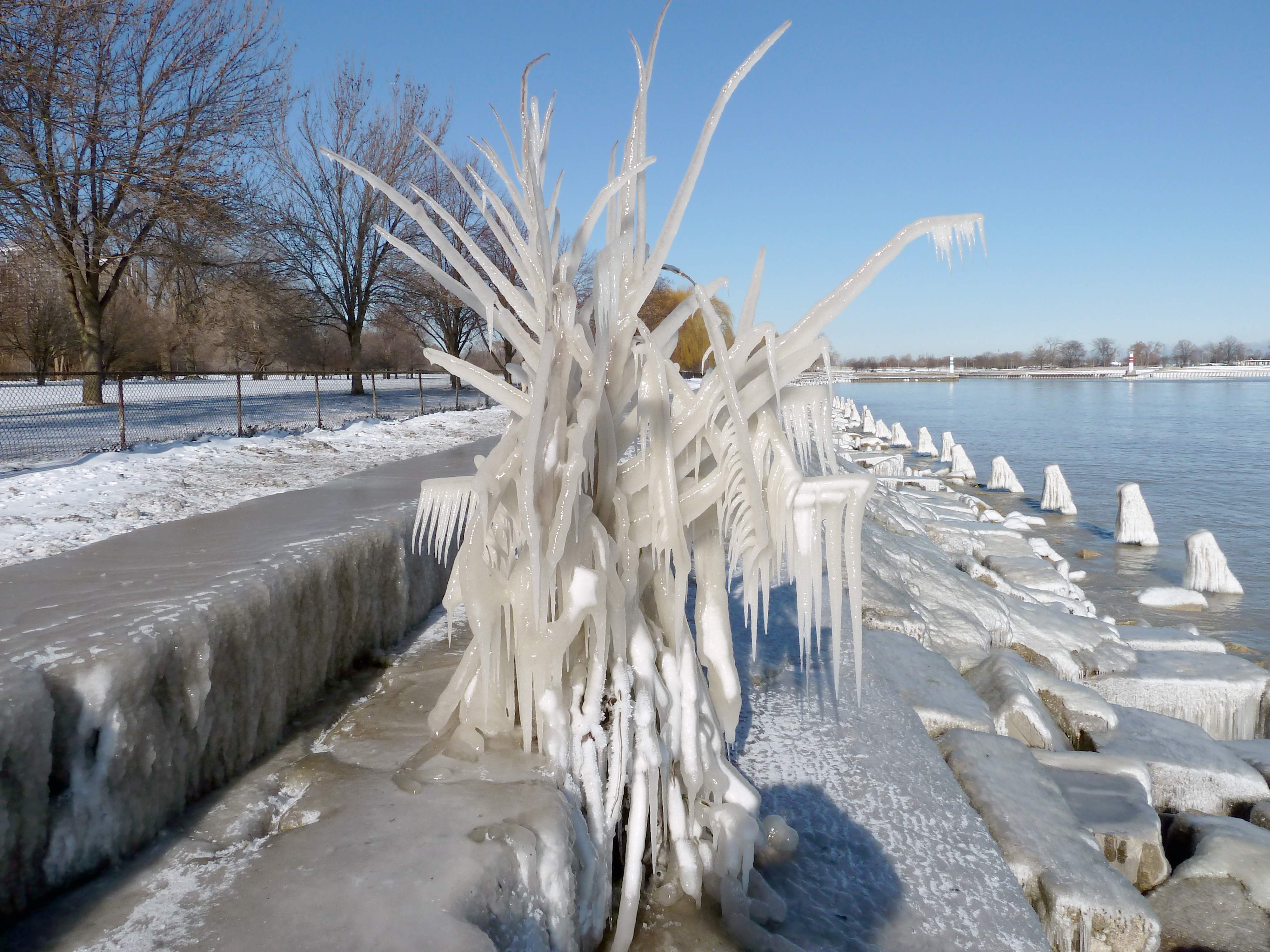 Dec. 14, 2010 – Nature’s Ice Sculpture. We went for a walk along Lake and saw some interesting ice formations. It was cold (around 12 degrees), but sunny, and the wind wasn’t blowing. 41.850033 -87.650052 Share this: Click to share on Facebook (Opens in new window) Facebook Click to email a link to a friend (Opens in new window) Email Like Loading... Related