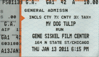 Went to see “My Dog Tulip” tonight at the Gene Siskel Film Center. It was entertaining with wonderfully animated illustrations and amusing narration.