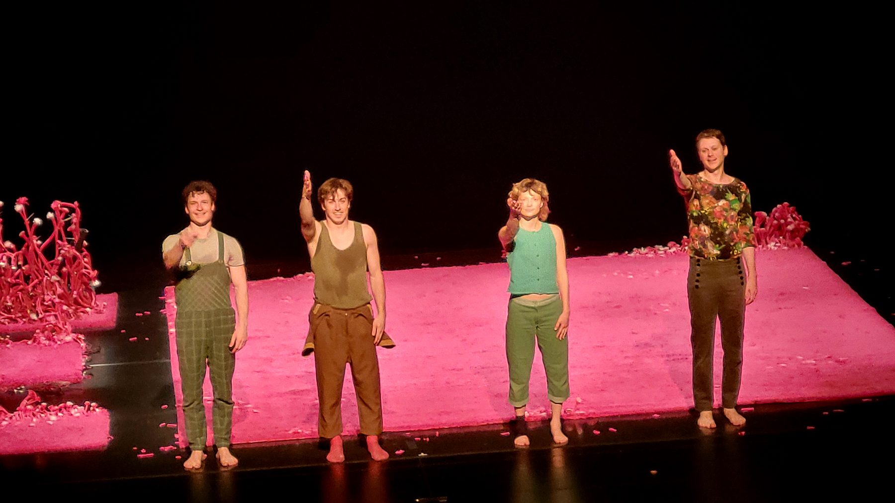 “The Problem with Pink” is a charming and thought-provoking play that blends dance, theatre, and striking visuals to explore themes of friendship, identity, and the impact of gender stereotypes. This imaginative production is a collaboration between Le Petit Théâtre de Sherbrooke, based in Québec, Canada, and La Parenthèse, a French contemporary dance company founded by choreographer Christophe Garcia. Aimed especially at younger audiences, it invites reflection on societal norms while celebrating individuality. I thoroughly enjoyed all 55 minutes of this compact, compelling show tonight at the McCallum Theatre.