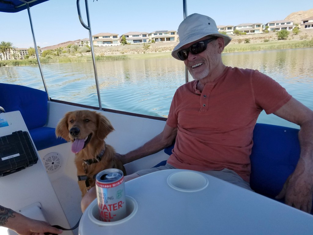 Fri., August 2, 2019 – Dave and Ludo on Lake Las Vegas celebrating Riley’s 4th Birthday.